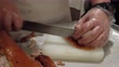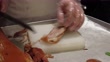 Peking duck is a dish from Beijing (Peking) that has been prepared since the imperial era. The meat is characterized by its thin, crisp skin, with authentic versions of the dish serving mostly the skin and little meat, sliced ​​in front of the diners by the cook. Ducks bred specially for the dish are slaughtered after 65 days and seasoned before being roasted in a closed or hung oven. The meat is often eaten with spring onion, cucumber and sweet bean sauce with pancakes rolled around the fillings . Sometimes pickled radish is also inside, and other sauces (like hoisin sauce) can be used.