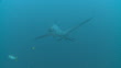 Pelagic Thresher Shark (Alopias pelagicus) being cleaned at cleaning station, swims to camera and through frame, CU, Monad Shoa, Malapascua, The Philippines - HD stock video