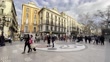 Barcelona, Catalonia, Spain - February 28, 2022: Pedestrians on Las Ramblas walk on top of the mosaic by Catalan artist Joan Miro