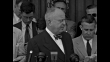 Title card: "People in the News" / title: "Delegates Meet Ike" superimposed over Cadillac limousine parked in front of Eisenhower home / Pennsylvania governor John S Fine shakes hands with Eisenhower in doorway, press takes photos / Fine makes speech about admiration for Ike, reporters behind him take notes / delegates get off bus / delegates surround Ike and wife Mamie Eisenhower on steps for photo / Ike shakes hands with New Hampshire governor Sherman Adams.