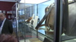 CLEAN: People looking at Titanic violin and other memorabilia on display in glass cabinet at auction in Wiltshire. Titanic violin and memorabilia auction display on October 18, 2013 in Wiltshire, England (Footage by Sky News/Getty Images)