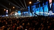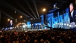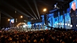 People on the crowd applaud the former soviet head of state and contributor to the end of the cold war Mikhail Gorbachev as he's projected on big screen at the back of the Brandenburg Gate in Berlin, in occasion of the public celebration of the fall of the Wall 25 years ago on November 9th 2014.