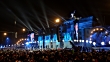 People on the crowd hold their smart phones to record the speech of the then Mayor of Berlin Klaus Wowereit projected on big screen at the back of the Brandenburg Gate in Berlin, in occasion of the public celebration of the fall of the Wall 25 years ago on November 9th 2014.