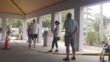 GAINESVILLE, FLORIDA – OCTOBER 20: People stand under covered area in line for early voting on October 20, 2020 in Gainesville, Florida. Voters are casting their ballots for presidential candidates President Donald Trump and Democratic presidential nominee Joe Biden. (Footage by Zachary Read/Getty Images)