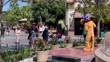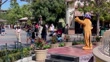 ANAHEIM, CA - APRIL 30: People take photos of a person dressed as Disney character Pluto as Disneyland and Disney's California Adventure reopen with social distancing and a reduced crowd at the Disneyland Resort on April 30, 2021 in Anaheim, California. Guests are being welcomed back as Disneyland Park, Disney California Adventure Park and Disney's Grand Californian Hotel & Spa are reopening. (Footage by Los Angeles Times via Getty Images)