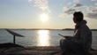 People using iPad with Starlink at beach - 4K stock video