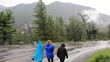 BANFF, CANADA - JULY 12: People walk in the rain near the Fairmont Banff Springs Hotel on July 12, 2023 in Banff, Canada. Numerous stories of paranormal phenomena surround this prestigious hotel in the Canadian Rockies, built in 1887-1888 by the Canadian Pacific Railway. Footage by Vincent Isore/IP3/Getty Images)