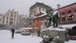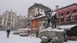 CHAMONIX MONT BLANC, FRANCE - NOVEMBER 21: People walk past the statue of Horace Bénédict de Saussure and Jacques Balmat in the historic centre during the first snowfall of the year on November 21, 2024 in Chamonix Mont Blanc, France. The opening of the ski lifts is expected in the next few days to launch the season in the famous alpine ski resort. (Footage by Vincent Isore/IP3/Getty Images)