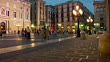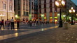 MS, DS, People walking on Placa de Sant Jaume at dusk, Barcelona, Spain - HD stock video