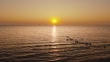 People Walking on the beach and swimming during Sunrise - Aerial View Of Tri-City at Sunrise - Beach - 4K Drone Footage - Stock Footage - 4K stock video