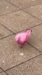 SOLIHULL, UNITED KINGDOM - JUNE 9: People walking outside spot a pigeon that has been dyed bright pink wandering around the sidewalk on June 9, 2022 in Solihull, United Kingdom. (Footage by Collab via Getty Images UGC)