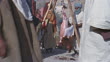 MS PAN RECREATION People walking through busy Middle Eastern market past man skinning carcass of dead animal / Iran - HD stock video