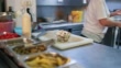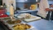 People working in kitchen in fast food restaurant and preparing food for delivery - 4K stock video