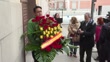 MADRID, SPAIN - MARCH 4: A person brings a wreath of flowers sent by King Juan Carlos to the funeral chapel for Fernando Onega at Casa de Galicia on March 4, 2026 in Madrid, Spain. (Footage by Europa Press via Getty Images)