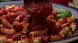 ECU, ZO, Person pouring tomato sauce on pasta - HD stock video