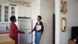 A personal advisor is shaking hand with a customer at home - 4K stock video
