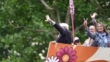 LONDON, ENGLAND - JUNE 5: Peter Purves rides a bus along The Mall during the Platinum Pageant on June 5, 2022 in London, England. The Platinum Jubilee of Elizabeth II is being celebrated from June 2 to June 5, 2022, in the UK and Commonwealth to mark the 70th anniversary of the accession of Queen Elizabeth II on 6 February 1952. (Footage by Klára Šimonová/Getty Images)