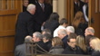 Phil O'Donnell funeral; SCOTLAND: Hamilton: St Mary's Church:EXTChurch with large crowd outside for funeral of Phil O'Donnell (Motherwell FC captain)Large white wreathBack View Family entering churchMourners in queue PAN