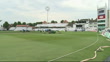 England v India: photocall and India training; ENGLAND: Nottingham: Trent Bridge:EXT*** WARNING SOME FLASH PHOTOGRAPHY *** Alastair Cook (England captain) and Mahendra Singh Dhoni (MS Dhoni, India captain) from pavilion and along to pose with trophy / Various shots of Indian cricket team practising on pitch