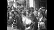 Phyllis Kirk, Virginia Gibson, and man wave from atop rear seat of convertible to crowd clustered around car and they drive past / tilt view of "The Maxwell House" and pan down to crowd on sidewalk as Gordon MacRae gets into car and banters with people, Sen. Estes Kefauver