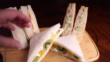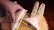 Picking up a Japanese convenience store sandwich panning left to right - HD stock video