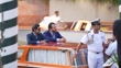 VENICE, ITALY - AUGUST 31: (SLOW-MO) (L-R) Pierfrancesco Favino and Director Edoardo De Angelis leave on a boat at the 80th Venice International Film Festival 2023 on August 31, 2023 in Venice, Italy. (Footage by Klára Šimonová/Getty Images)