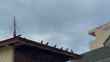Pigeons on rooftop from low angle view - 4K stock video