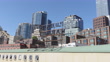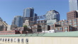 We see the Pike Place Market sign from the street level, under the sign there is the market behind the sign we can see the City of Seattle, this is the sign of the market from behind, from the docks area overlooking the city.