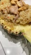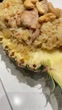 Pineapple fried rice with chicken and cashews in a carved pineapple - 4K stock video