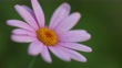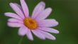 Pink daisy common flower macro in light wind video 4K 60p. Flower is positioned at the left of the frame to allow copy space. Detail of pink leaves yellow pollen on dark background
