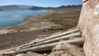 LAKE MEAD NATIONAL RECREATION AREA, NEVADA - JUNE 12: Pipes from an abandoned water intake tower on Pyramid Island, which is no longer surrounded by water, extend out at Lake Mead on June 12, 2021 in the Lake Mead National Recreation Area, Nevada. This week, the U.S. Bureau of Reclamation reported that Lake Mead, North America's largest artificial reservoir, dropped to 1,071.53 feet above sea level, the lowest it's been since being filled in 1937 after the construction of the Hoover Dam. The declining water levels are a result of a nearly continuous drought for the past two decades coupled with increased water demands in the Southwestern United States. (Footage by Ethan Miller/Getty Images)