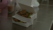 Placing white boxes of rice and beans, chicken and salad on counter - HD stock video