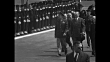 MS USAF plane taxis slowly past camera (good shot) on tarmac of Orly airfield, comes to stop just as USAF emblem appears / US Gen. Matthew Ridgway and wife Mary ("Penny") deplane with others / Ridgway and French Defense Minister Rene Pleven and other officials walk on tarmac past honor guard in background as Ridgway arrives to assume command as Supreme Allied Commander Europe for NATO forces / Note: exact day not known