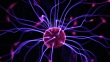 Streams of glowing plasma in a plasma globe. The streams are connected to the spherical electrode at its centre. A plasma globe is a glass sphere filled with noble gases (usually neon, krypton and xenon) at low pressure, with a very high voltage, high frequency electrode at its centre. The electrical energy ionises regions of the gas, which form a glowing plasma that extends to the insulating glass shell of the globe. The streams of plasma are attracted to conducting objects placed on the outside of the globe, such as fingers.