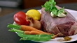 PAN to leg of lamb with garlic, carrots, onion, lemon, tomato, peas and parsley