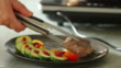 Plating cooked rump steaks and basmati rice - 4K stock video