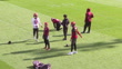 MADRID, SPAIN - NOVEMBER 14: (EDITORS NOTE: audio/music licensing is not included.) (COMPILATION) Players from the Washington Commanders, perform running drills, stretching exercises, and ball handling drills in their final training session ahead of their game against the Miami Dolphins on November 14, 2025 in Madrid, Spain. The American team has been training at Real Madrid's Sports City. The NFL comes to Madrid with the game between the Miami Dolphins and the Washington Commanders. (Footage by Europa Press via Getty Images)