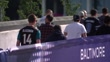 Crowds along beneath signs for Baltimore Ravens and Jacksonville Jaguars