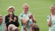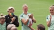 LONDON, ENGLAND - JULY 30: (AUDIO OMITTED) Players of Germany gather and clap during the UEFA Women's Euro England Germany press conference and training session at Wembley Stadium on July 30, 2022 in London, United Kingdom. England play Germany at the UEFA Women's Euro England 2022 Final at Wembley Stadium, England. (Footage by Ming Yeung/Getty Images)