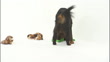 A playful Gordon setter dog sniffs a toy. - HD stock video