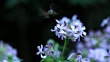 Plumbago auriculata (common names blue plumbago, Cape plumbago or Cape leadwort)And Macroglossum stellatarum moth flying and feeding from the nectar of the flowers