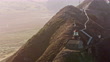 Aerial shot of the Point Sur Lighthouse in Monterey County, California. Shot in USA.