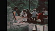 1970s: dried rosary bean. Red berries on plant. Rosary beans as decorations. Necklace made from seeds and beans. Decoration on leather bag. Children at outdoor barbecue. Girl asks for hot dog