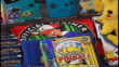Pokemon merchandise ranging from Game Boy Cartridges to trading cards and other collectibles are displayed on a table.