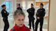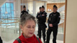 PARIS, FRANCE - MARCH 24: Police look on as Actress Anouk Grinberg speaks to the press, saying "There comes a time when we can't take it anymore, so much lying," after being forced to leave the courtroom during Gérard Depardieu's sexual assault trial on March 24, 2025 in Paris, France. The trial of Gérard Depardieu, accused of sexually assaulting two women during the filming of a movie in 2021, opened today after a five-month postponement due to health reasons. (Footage by Photo and Co/Getty Images)