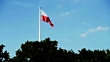 Polish flag with Fighting Poland symbol on waving above treetops - HD stock video