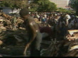 Mozambican Civil War: Political and economic problems caused by guerillas:; MOZAMBIQUE: Maputo:EXTMS Man chops wood in local marketCS Mozambique money handed over - PULL OUT female stall holderBV TRACK past queue - queueing for milkMS Cup of milk pouredTMS Idle docks - ship moored at quaysideMS PAN R-L as empty crane grab loweredGV Two idle container cranes (Italian govt has invested 7m dollars in these cranes)TS Containers on dockside PAN L-RMS Train passes on left - idle ship at quayside on right(Train and road links cut by guerrilla activity)LMS Warehouses ZOOM ON stationary goods trucks in front of them on quaysideLMS Buses - supplied by British Leyland - ZOOM IN wheel hub with no tyres on it (no tyres left in the country)MS Interior wrecked busBV Steering wheel seen through glass spattered with bullet holesAIRVIEW Beaches (Guerrilla activity has put off the expected tourists)MS Hotel and beachAIRVIEW BeachesBV Man stands at waters edge ZOOM high rise hotelMS Hotel grounds - PAN L-R white people sunbathingMS White adults and children in poolMS White couple sun bathingLMS Light plane towards and over landing (only safe way to travel)MS Boat on empty beach PAN L-R hotel in B/GTMS Table and chairs - TILT UP beachLMS Black people sit on beach wall - PAN L-R to disused petrol pumpCahora Bassa:MS Frelimo troops R-L - dam in distanceAIRVIEW Cahora Bassa damTS Water cascades TILT UP Zambesi river and valley as water flowing into it - rainbow in f/gGV Water cascadesINTMS Hydro-electric power station windows - lit up windows - PULL OUT interior plantTMS Water flowing L-R (could earn million of dollars supplying S Africa with electricity but project closed down because of guerrilla activity)