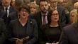 Lyra McKee killing: politicians attend funeral of murdered journalist; NORTHERN IRELAND: Belfast: St Anne’s Cathedral:INTIrish Prime Minister Leo Varadkar, Prime Minister Theresa May MP and Irish President Michael D Higgins in the congregation for the funeral of murdered journalist Lyra McKee with Irish Foreign Minister Simon Coveney and Northern Ireland Secretary Karen Bradley MP stood behindDUP Leader Arelene Foster stood next to Sinn Fein Leader Mary Lou McDonald.Congregation stod and singing hymn