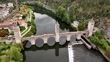 Pont Valentré fortified stone arch bridge crossing the river Lot to the west of Cahors, France