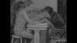 Poodle sits in a chair as a woman wearing a bathing suit works on the dog, with electric curlers dangling over its head / woman holds mirror up to poodle / two white Sealyham Terriers in a chair with the groomer wearing shorts and a large conical hair dryer at right; she brushes one of them / A manicurist attends to a Doberman pinscher // VS crowd of people with people walking their dogs next to a swimming pool / VS CU Afghan hound, bloodhound/ man grooms a cocker spaniel / CUs a reclining collie/ Note: exact day not known; no reporter track
